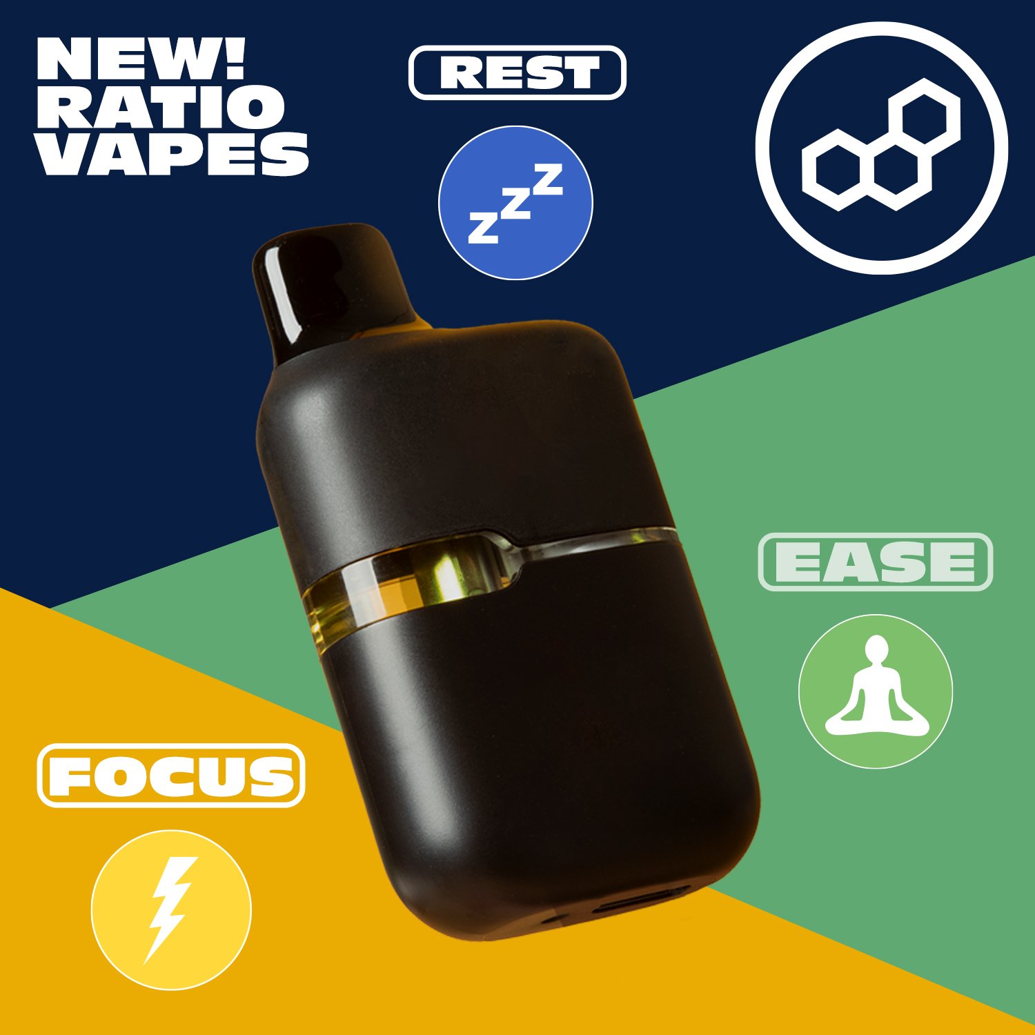 Ratios is a purpose-driven vape line built for balance, clarity, and control. Each blend is meticulously crafted with targeted cannabinoid ratios to deliver consistent, functional effects — not just highs.